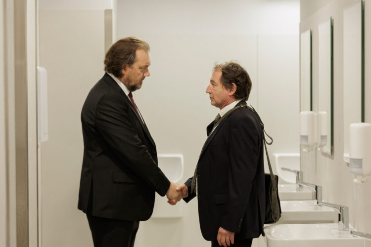 Und als das fragile Kartenhaus der Geschichte um ihn herum einzustürzen droht und sein Leben so richtig im Chaos versinkt, trifft er Paula (Christiane Paul). Dass eine erfolgreiche, kluge und witzige Frau wie sie sich für einen Mann wie ihn interessieren könnte, hätte Micha nicht für möglich gehalten. Doch die sich anbahnende Liebesgeschichte wird von der Lüge überschattet.