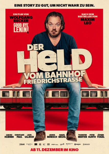 DER HELD VOM BAHNHOF FRIEDRICHSTRASSE erzählt die Geschichte vom kurz vor der Pleite stehenden Berliner Videothekenbesitzer Micha Hartung (Charly Hübner), der ungewollt zum gesamtdeutschen Helden wird: Als ihn zum 30. Jahrestag des Mauerfalls ein Journalist zum Drahtzieher der größten Massenflucht der DDR stilisiert, steht sein Leben plötzlich Kopf. Als Hochstapler wider Willen verstrickt sich Micha in einem Gestrüpp aus Halbwahrheiten und handfesten Lügen.